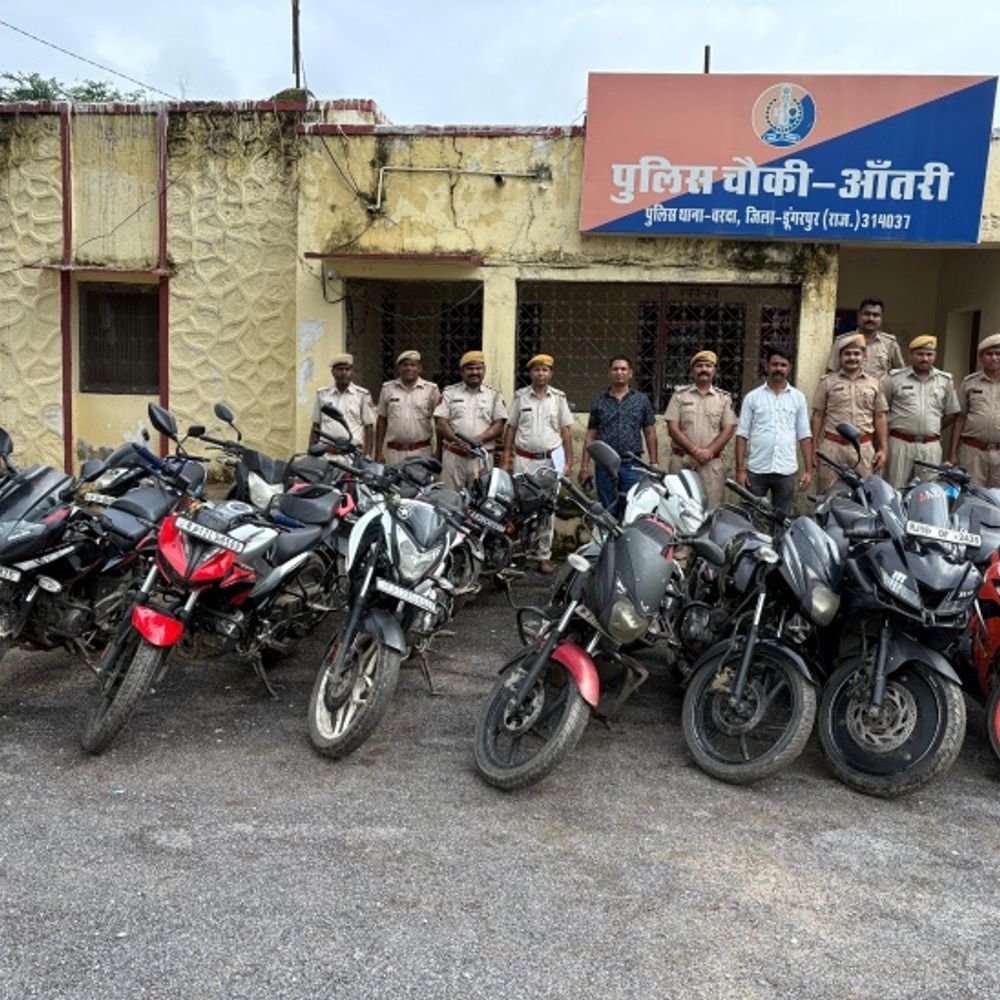 डूंगरपुर में वरदा थाना पुलिस ने स्टंटबाजों के खिलाफ कार्रवाई कर 20 पावर बाइक्स जब्त की।