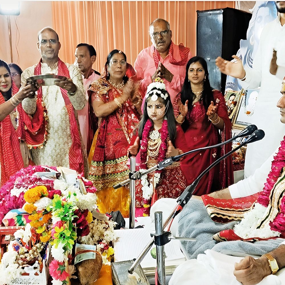 सिलोर रोड जैन दादाबाड़ी में भागवत कथा के दौरान आरती उतारते श्रद्धालु। नानी बाई रो मायरो कथा का किया वर्णन रात्रि को कथा में नानी बाई रो मायरो का भावपूर्ण वर्णन कथावाचिका राधा स्वरूपा तितिक्षा दाधीच ने किया। उन्होंने भगवान नरसी मेहता के जन्म, उनकी भक्