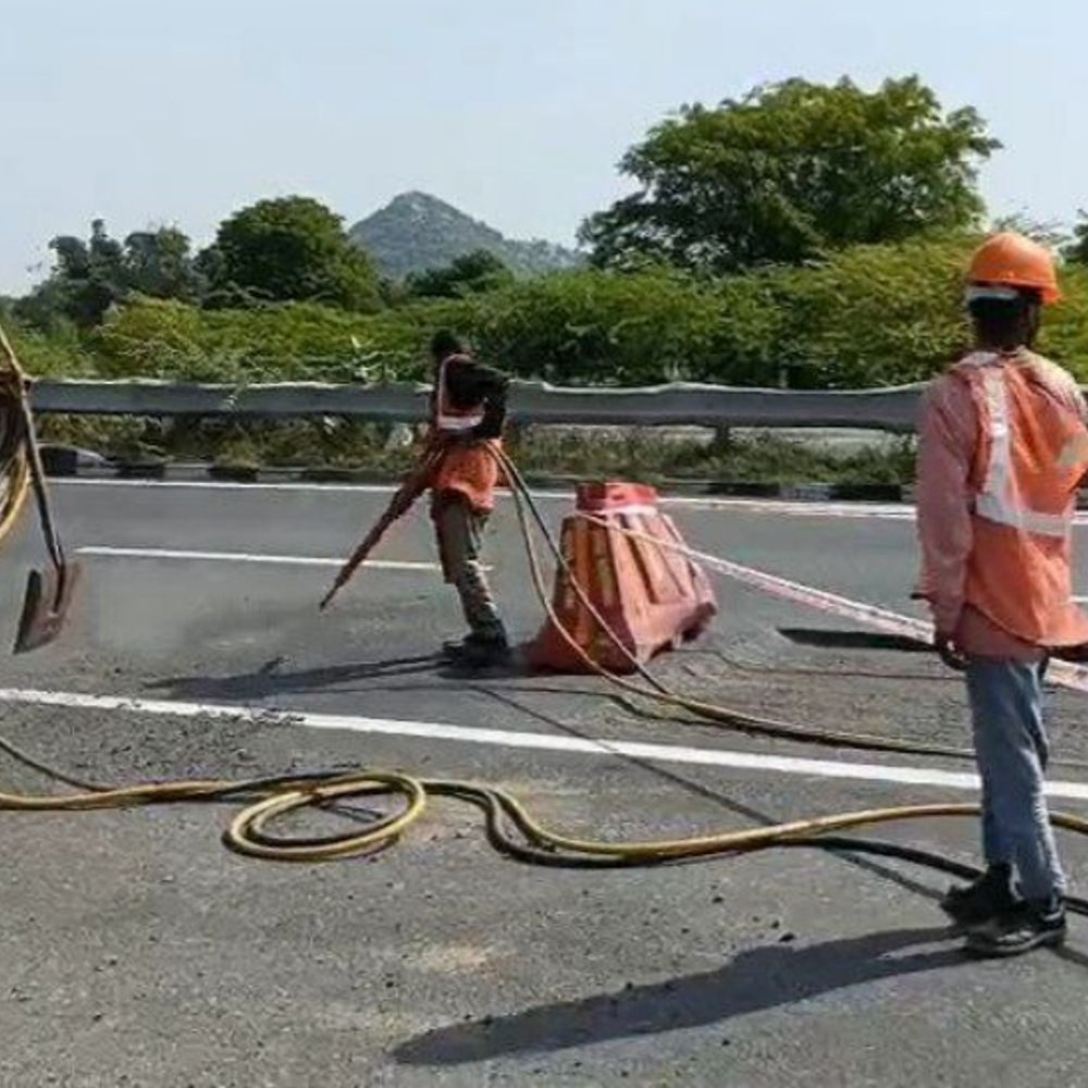 पाली जिले के सांडेराव के निकट हाइवे पर हादसे के बाद मौके पर पहुंचे टोलकर्मी।