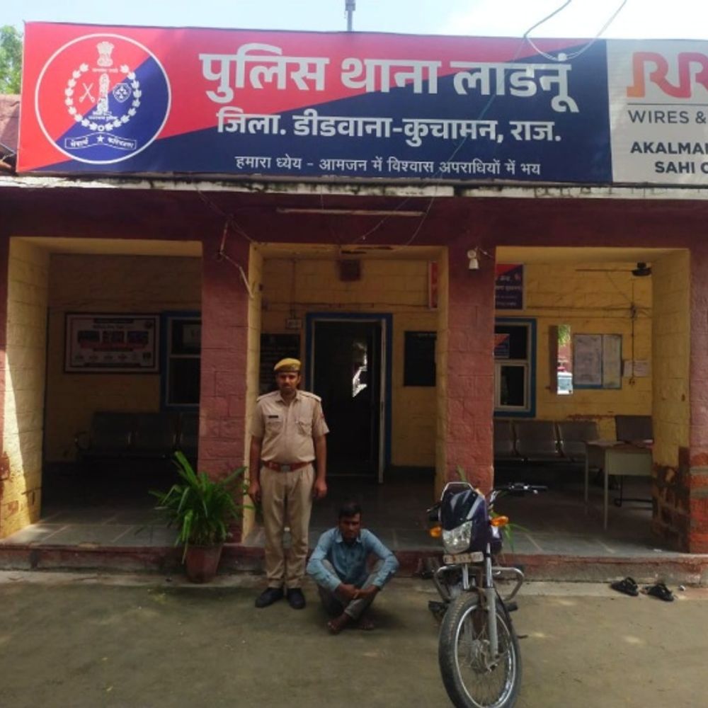लाडनूं पुलिस ने बाइक चोरी के मामले में आरोपी को गिरफ्तार कर लिया है। थानाधिकारी महीराम बिश्नोई के नेतृत्व में गठित टीम ने सीसीटीवी फुटेज और फील्ड इंटेलिजेंस की मदद से सुजानगढ़ के बाड़ा निवासी छोटूराम नायक (35) को पकड़ा।