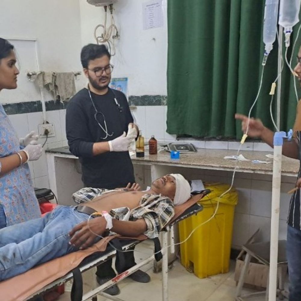 पाली के बांगड़ हॉस्पिटल में घायल का उपचार करते हुए डॉक्टर्स।