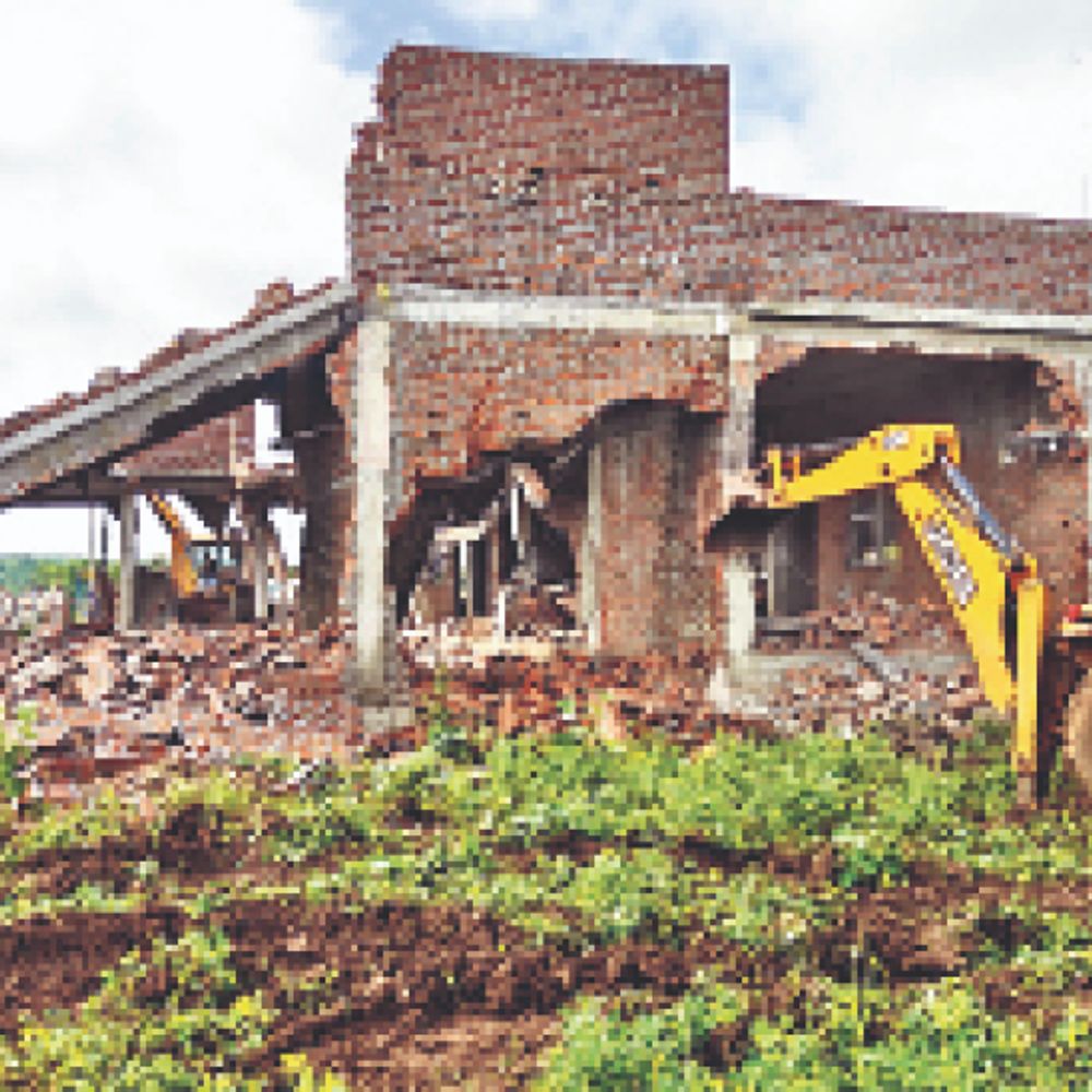 घाटोली थाना क्षेत्र के मानपुरा गांव में वन भूमि पर कब्जा कर तस्कर पप्पू तंवर उर्फ टोल की ओर से करीब 2 करोड़ की लागत से निर्माणाधीन फार्म हाउस रविवार सुबह बुलडोजर से जमीदोंज कर दिया गया। तस्कर पप्पू के खिलाफ अलग-अलग थानों पर 7 मामले दर्ज हैं।