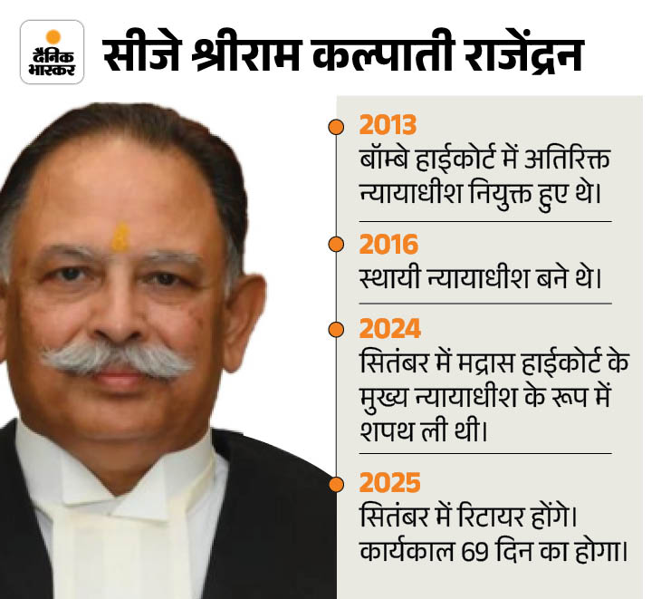 21 जुलाई को ली थी सीजे की शपथ जस्टिस श्रीराम कल्पाती राजेंद्रन (श्रीराम के.आर.) ने 21 जुलाई को राजस्थान हाईकोर्ट के 43वें मुख्य न्यायाधीश के रूप में शपथ ली थी। राजभवन में राज्यपाल हरिभाऊ बागडे ने उन्हें शपथ दिलाई थी।