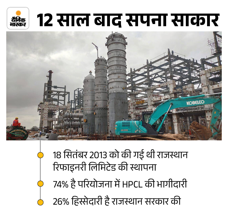 वहीं केंद्रीय मंत्री हरदीप सिंह पुरी ने कहा-केंद्र सरकार, राज्य सरकार और एचपीसीएल इस काम को साल के अंत तक या उससे पहले पूरा कर देंगे। बहुत जल्दी रिफाइनरी चालू हो जाएगी। आज मुख्यमंत्री ने कंट्रोल रूम का उद्घाटन कर दिया है। बाकी फैसिलिटी भी शुरू हो गई है। रिफाइनरी से क्षेत्र ही नहीं, पूरे राजस्थान का विकास होगा। आगे इसमें विस्तार की भी कैपेसिटी है। यहां एचपीसीएल एक स्किल डवलपमेंट सेंटर भी खोलेगा।