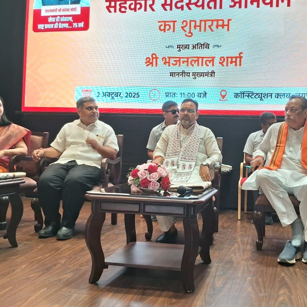 राज्य सरकार द्वारा 2 से 15 अक्टूबर तक आयोजित किए जाने वाले सहकार सदस्यता अभियान का शुभारंभ आज, गुरुवार को मुख्यमंत्री भजनलाल शर्मा कांस्टीट्यूशन क्लब में आयोजित समारोह में करेंगे। सहकारिता राज्य मंत्री (स्वतंत्र प्रभार) गौतम कुमार दक, मंत्री जोराराम