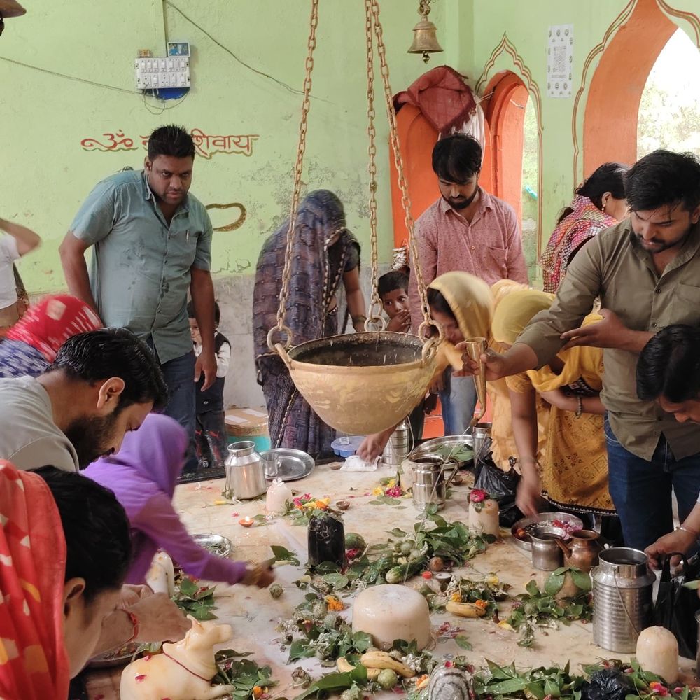 14 महादेव के मंदिर पर श्रद्धालु पूजा अर्चना करते हुए।