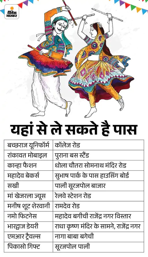 ये होंगे प्रायोजक दैनिक भास्कर के यूनिट हेड अजय सैनी ने बताया कि कार्यक्रम के मुख्य प्रायोजक बीसीएम ग्रुप वेन्यू, होटल सिद्धार्थ, सहयोगी एमडी प्रॉपर्टी, दिव्या ग्राफिक, श्री श्याम गरबा ग्रुप, फादर्स चिल्ड्रन स्कूल, बलाड़ फैब्रिक, जय अंबे रिसोर्ट, देवड़ा हुंडई, राहुल पेट्रो नेट, उगम ईट, मेड़तिया स्वीट होम, कान्हा फैशन, रामदेव टेंट हाउस, श्रीराम सिक्योरिटी, आरके 16-16 ग्रुप, टिनी टच मेमोरीज, मानवी ब्यूटी पार्लर एंड गरबा ड्रेसेज होंगे। इस महोत्सव के लिए श्री श्याम ग्रुप द्वारा आदर्श नगर स्थित फादर्स चिल्ड्रन स्कूल में शाम 5 से रात 8 बजे तक एक्सपर्ट प्रदीप जाम, हेमंत जलवाणिया ने गरबा का प्रशिक्षण दिया हैं।
