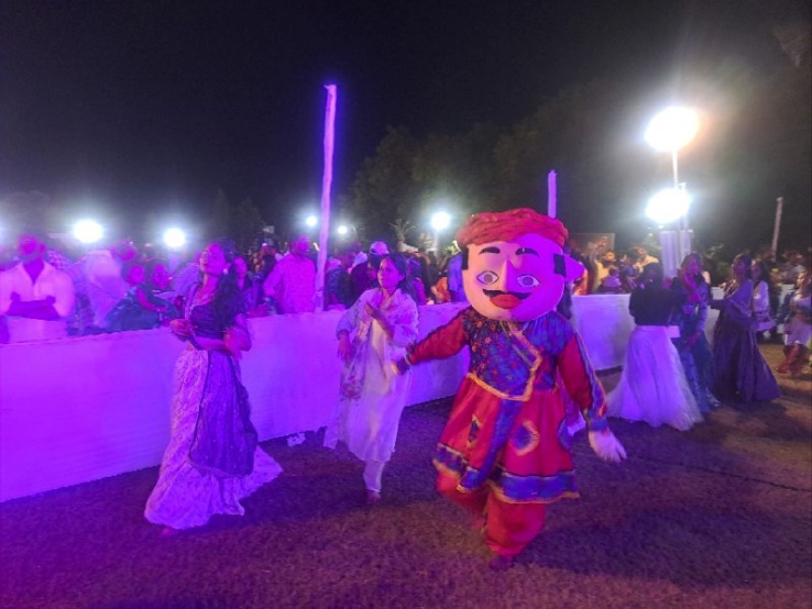 पाली के जोधपुर रोड होटल सिद्धार्थ के ग्राउंड में दूधिया रोशनी से सजे ग्राउंड में गरबा खेलते शहरवासी।