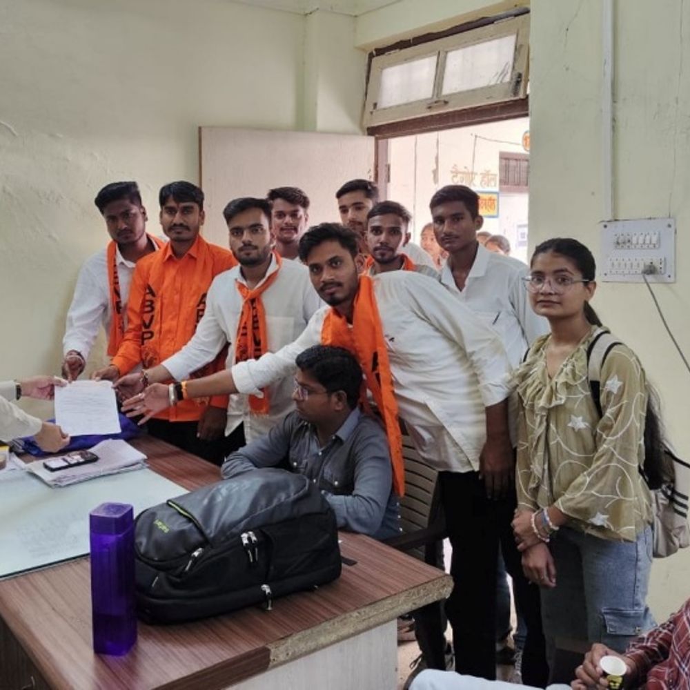 एबीवीपी कार्यकर्ताओं ने सोमवार को एक शिक्षक के खिलाफ प्रदर्शन किया।