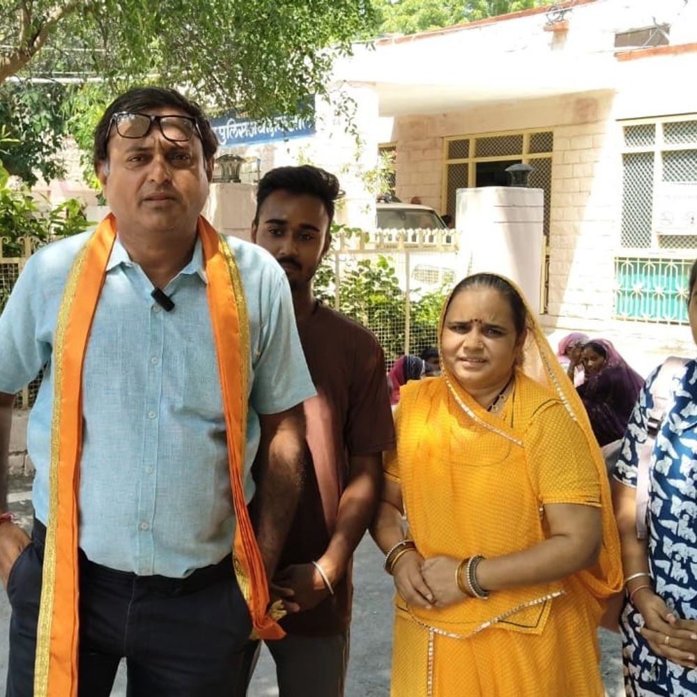 जालोर एसपी कार्यालय के बाहर मौजूद पीड़िता।