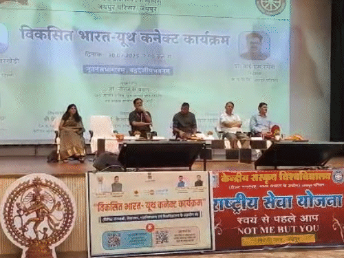 केंद्रीय संस्कृत विश्वविद्यालय, जयपुर परिसर की राष्ट्रीय सेवा योजना इकाई की ओर से गुरुवार को “विकसित भारत – यूथ कनेक्ट कार्यक्रम” का आयोजन किया गया। इस कार्यक्रम में परिसर के निदेशक प्रोफेसर वाई एस रमेश, सह निदेशक बोध कुमार झा उपस्थित रहे।