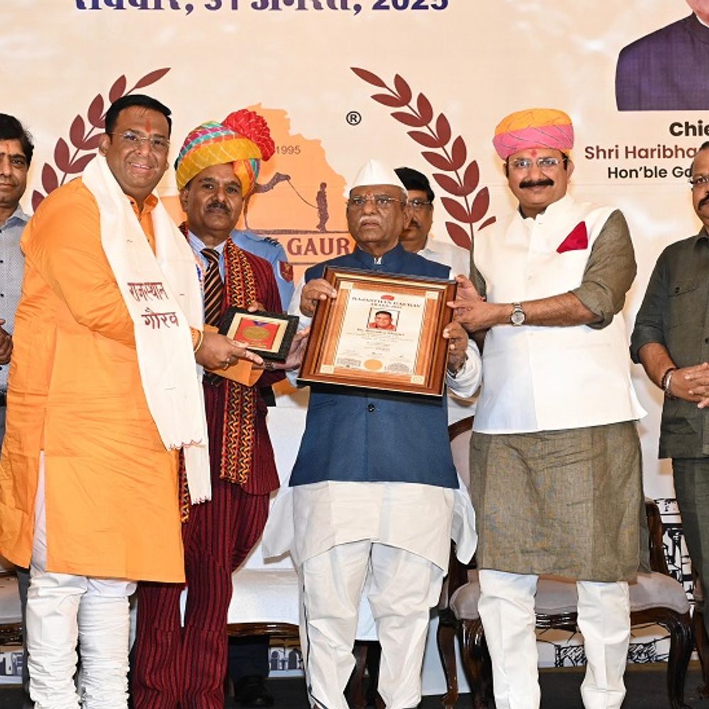 संस्कृति युवा संस्था की ओर से जयपुर में आयोजित सम्मान समारोह में उदयपुर के समाजसेवी व भाजपा आपदा राहत विभाग राजस्थान के प्रदेश संयोजक डॉ. जिनेंद्र शास्त्री को राजस्थान गौरव सम्मान से सम्मानित किया। कार्यक्रम में मुख्य अतिथि राज्यपाल हरिभाऊ बागडे, संस
