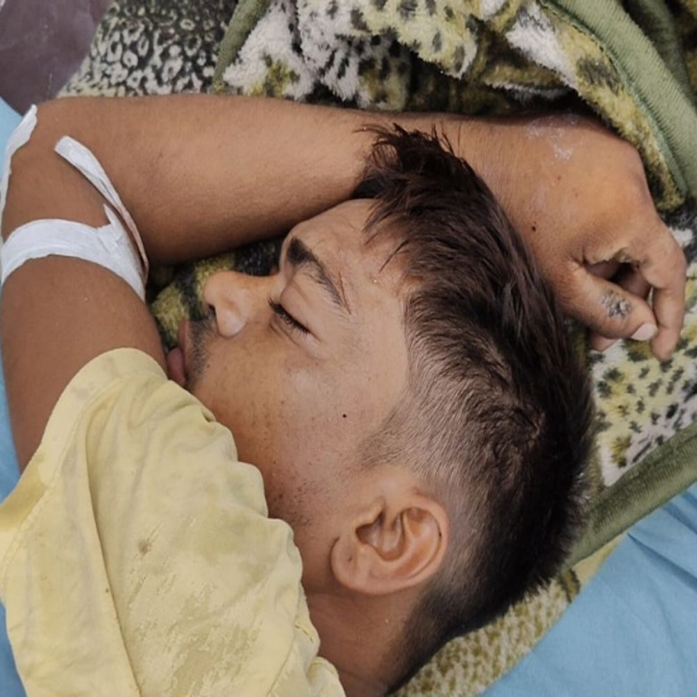जिला अस्पताल में भर्ती घायल राजू जाटव।