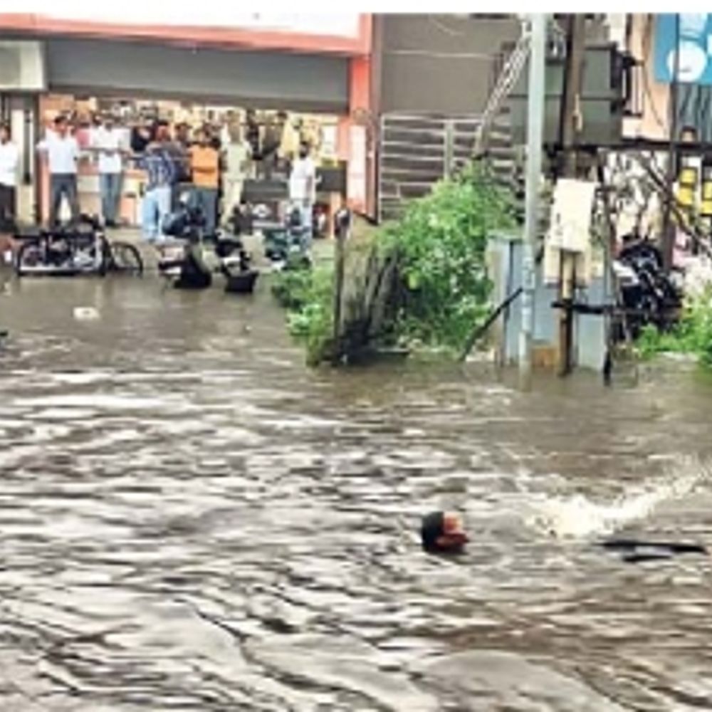 अलवर| शहर में शनिवार को मूसलाधार बारिश से जनजीवन अस्त-व्यस्त हो गया। सड़कों पर करीब तीन फीट तक पानी भर गया। केंद्रीय जेल के पास सड़क धंस गई। शहर की दुकानों व घरों में पानी घुस गया। कॉलोनियों में जलभराव से आवागमन बाधित हो गया। दोपहिया वाहन चालक पानी में फंसते रहे। एक व्यक्ति बाइक सहित नाले में गिर गया। मौके पर मौजूद लोगों ने उन्हें बाहर निकाला।