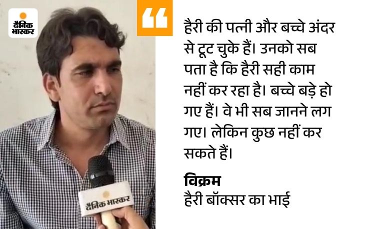 भाई को पकड़ कर ले गई थी पुलिस हैरी बॉक्सर का छोटा भाई विक्रम फाइनेंस कंपनी में काम करता है। विक्रम ने बताया- 9 अगस्त की सुबह ही जयपुर से आया हूं। एक दिन पहले पुलिस ले गई थी। रात भर वहीं रखा। सुबह साढ़े 4 बजे गांव पहुंचा हूं। पिछले 3 रात से सोया भी नहीं हूं।