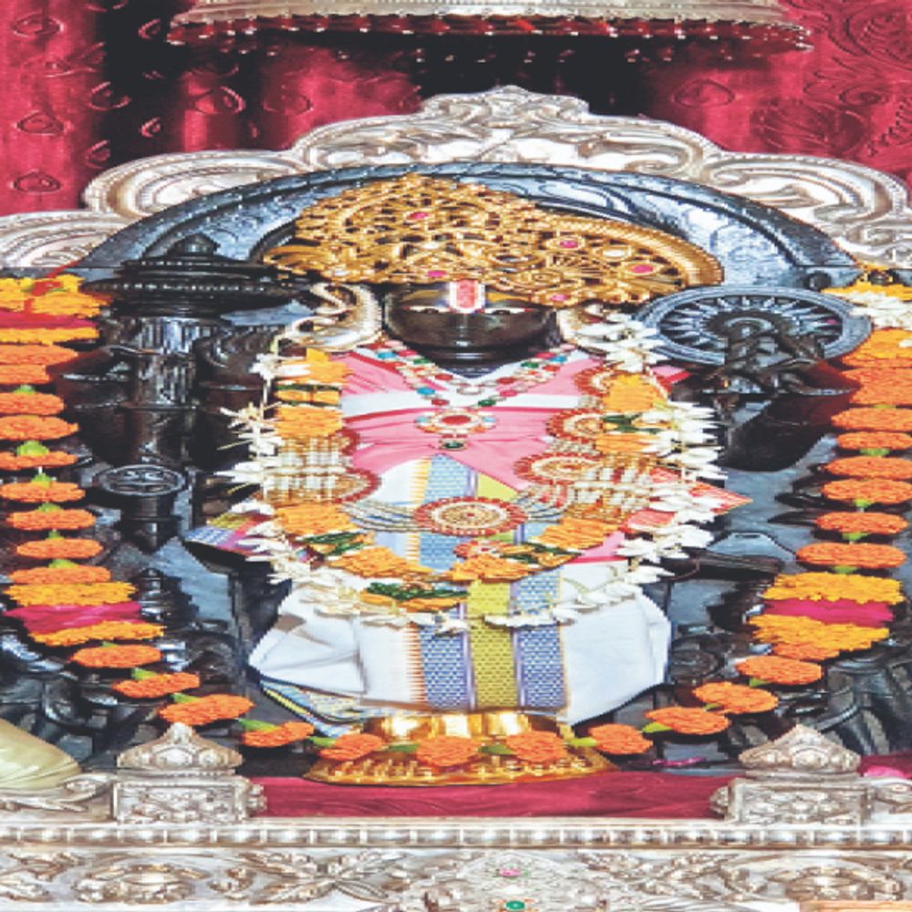 मंदिर में भगवान विष्णु के कई अवतारों की प्रतिमाओं के साथ हनुमान, वाहन गरुड जी की प्रतिमा है। मंदिर का नाम भगवान रणछोड़ राय (द्वारिकाधीश) मंदिर है। स्थानीय भाषा में अष्ट भू वैकुंठ आश्रम के नाम से जाना जाता है।