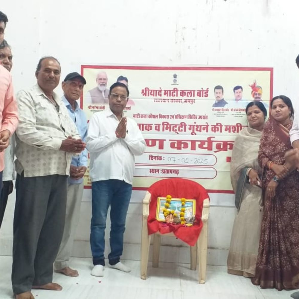 राजस्थान सरकार की ओर से माटी कला बोर्ड के बैनर तले सभापति रामकन्या/प्रहलाद गुर्जर के मुख्य आतिथ्य एवं प्रजापत समाज के जिलाध्यक्ष हीरालाल प्रजापत की अध्यक्षता व जयपुर से आए राजस्थान सरकार के प्रतिनिधि रोहित चौधरी के विशिष्ट आतिथ्य में अरनोद रोड स्थित अंबेडकर भवन में इलेक्ट्रिक चाक व मशीन वितरण समारोह आयोजित हुआ।