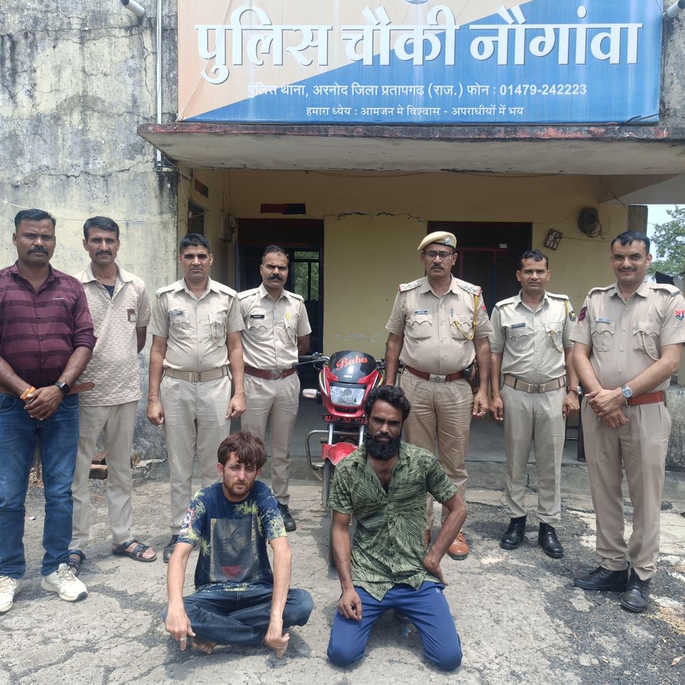 अरनोद थानाधिकारी हजारीलाल मीणा ने बताया-10 अगस्त 2025 को थानाधिकारी हजारीलाल अपनी टीम के साथ घोड़ाघट्टा देवल्दी की ओर गश्त कर रहे थे। इस दौरान देवल्दी की तरफ से एक मोटरसाइकिल पर दो व्यक्ति आए। पुलिस की जीप देखकर वे भागने लगे। पुलिस टीम ने उन्हें रोका और पूछताछ की।