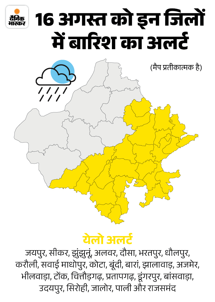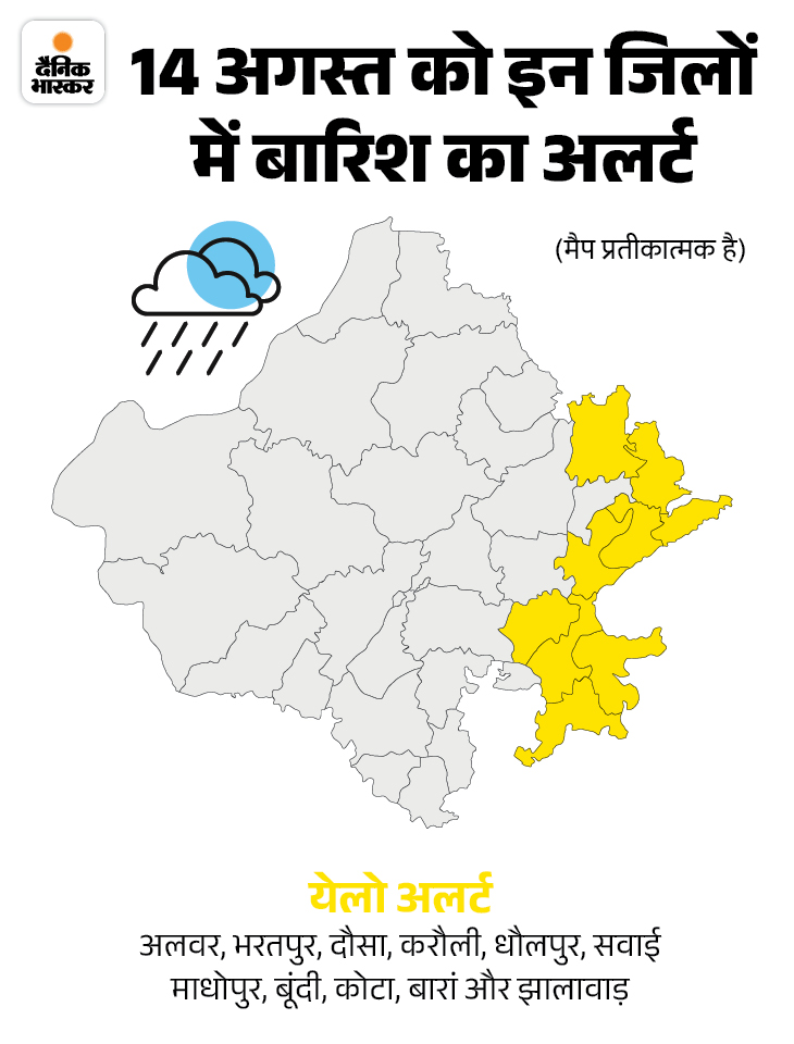 राजस्थान में मानसून के कल से फिर एक्टिव होने की संभावना है। बंगाल की खाड़ी में बना सिस्टम और पूर्वी हवाओं के एक्टिव होने से राज्य में एक बार फिर मानसून एक्टिव होगा। इस सिस्टम के प्रभाव से राज्य में 14 अगस्त से बारिश का दौर शुरू होगा। इसके लिए मौसम क