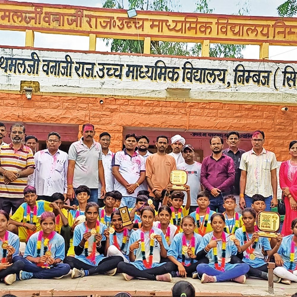 p style=”word-break:break-word;text-align:left;white-space:pre-line”>निम्बज | रेवदर में हुई 69वीं जिला स्तरीय हैंडबॉल प्रतियोगिता 14 वर्षीय छात्र/छात्रा वर्ग में छात्रा वर्ग निंबज की टीम प्रथम स्थान हासिल किया। इसी वर्ग की छात्र वर्ग टीम दूसरे स्थान पर रही। दोनों टीमों के खिलाड़ियों के बुधवार को गांव लौटने पर ग्रामीणो