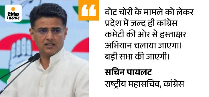 पायलट ने मीडिया से कहा- देश के लोगों को संदेह हो रहा है कि हमारा वोट चोरी हो रहा है। राहुल गांधी ने कर्नाटक में एक लोकसभा सीट पर हुए लाखों वोटों की चोरी का प्रमाण दिया। हम कह रहे हैं जांच करो, लेकिन चुनाव आयोग के पास किसी बात का कोई जवाब नहीं है। यह लोकतंत्र में स्वस्थ परंपरा नहीं है।
