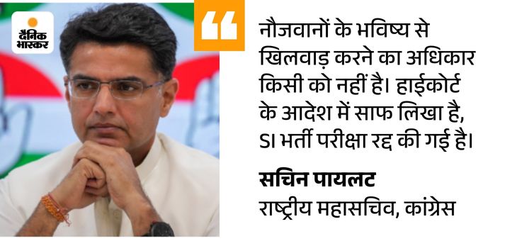 पायलट ने SI भर्ती को लेकर भी निशाना साधा। उन्होंने कहा- RPSC में बहुत सारी कमियां हैं। इसका उल्लेख मैंने यात्रा निकाल कर भी किया था। कोर्ट का जजमेंट सरकार के मुंह पर तमाचा है। पौने 2 साल तक सरकार क्या कर रही थी।