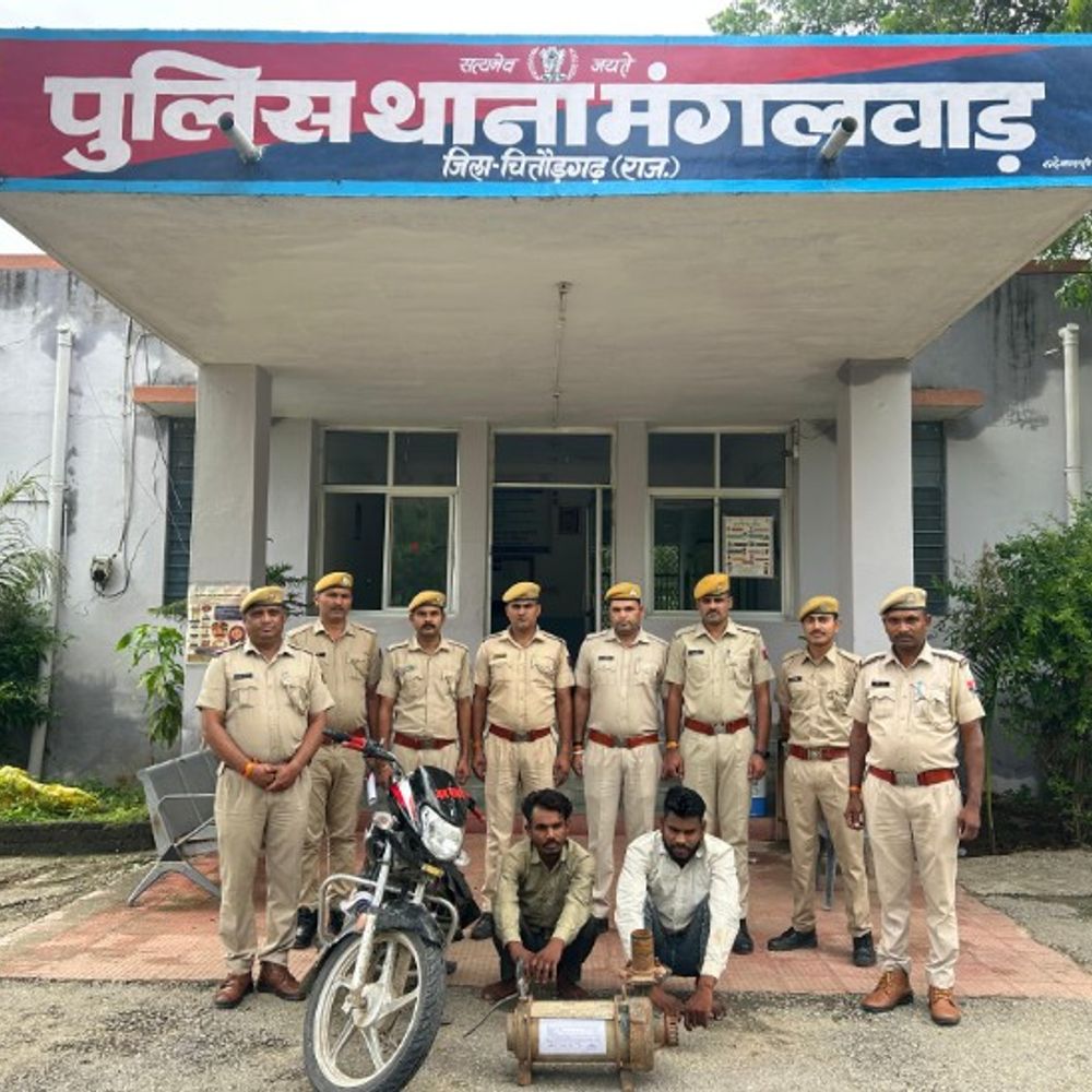 चित्तौड़गढ़ जिले के मंगलवाड़ थाना क्षेत्र में पुलिस ने दो चोरों को गिरफ्तार किया है। ये आरोपी एक पानी की मोटर चोरी कर उसे बेचने जा रहे थे। पुलिस ने इनके पास से चोरी की मोटर और वारदात में इस्तेमाल की गई बिना नंबर की मोटरसाइकिल भी जब्त कर ली है।