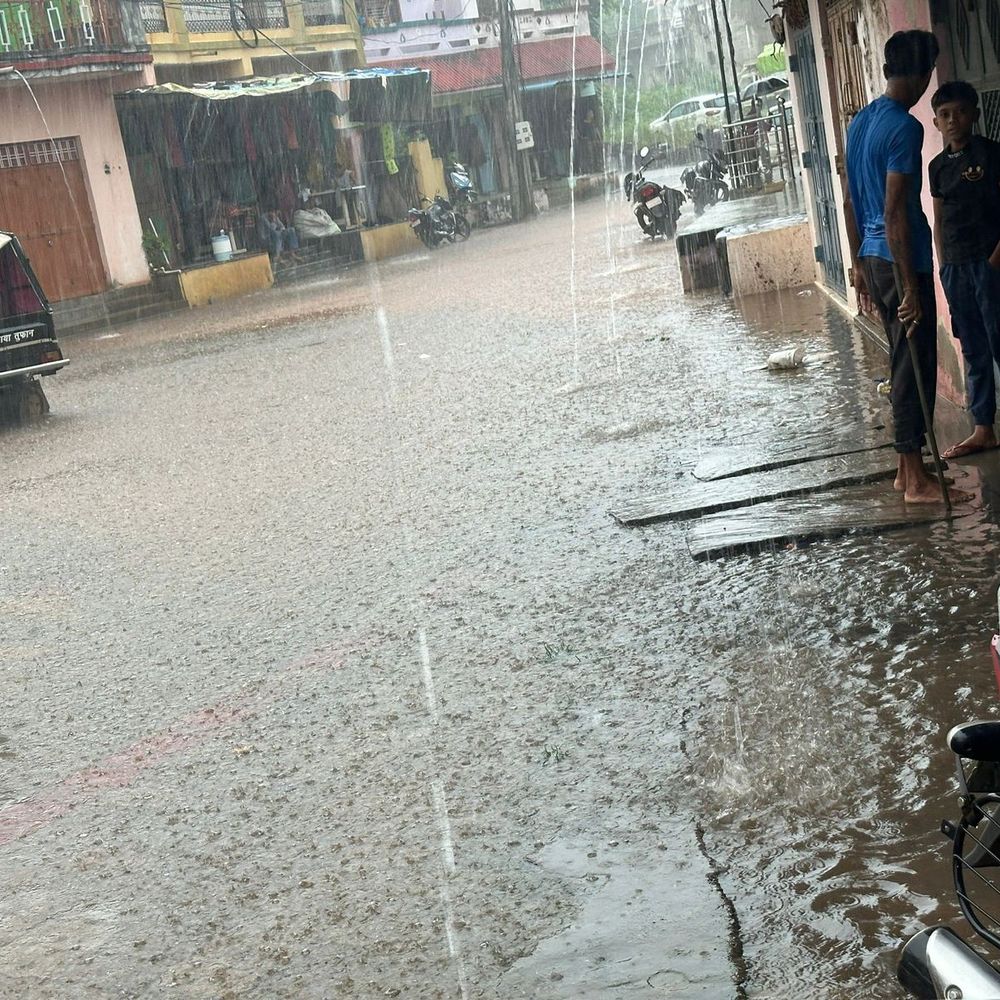 डूंगरपुर में बुधवार दोपहर बाद झमाझम बरसात का दौर शुरू हो गया। शहर समेत गांवों में तेज बरसात से सड़कों पर पानी बहने लगा। कई खाली जगहों पर पानी भर गया। वहीं गामड़ी अहाड़ा मेन रोड पर सड़क पर पानी भरने के बाद निचली दुकानों में घुस गया। इससे दुकानदारों को