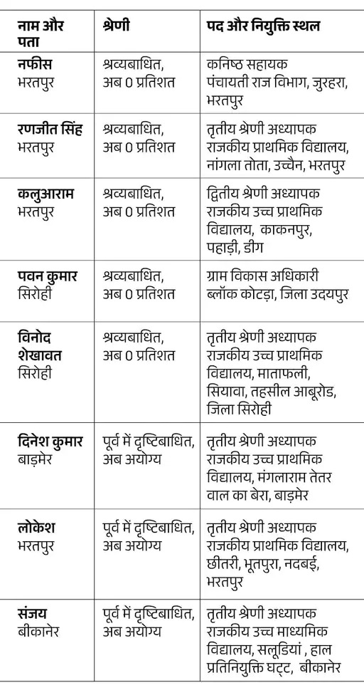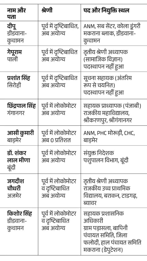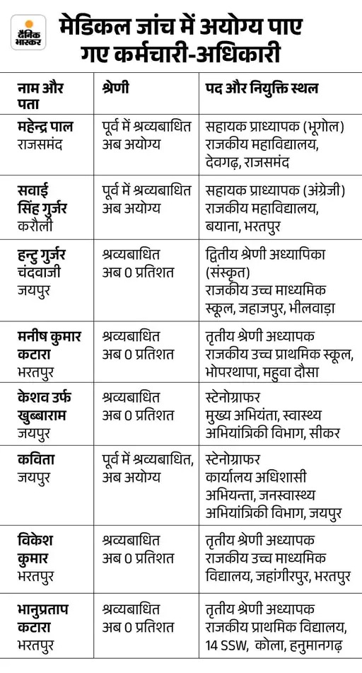 राजस्थान में भर्ती परीक्षा में हुई धांधली और गड़बड़ी के खिलाफ राज्य सरकार एक्टिव मोड में आ गई है। सरकार ने प्रदेशभर के सरकारी विभागों में लगे दिव्यांग कोटे के कर्मचारियों की फिर से जांच करने का फैसला किया है। इसके लिए सरकारी हॉस्पिटल में एक्सपर्ट डॉक