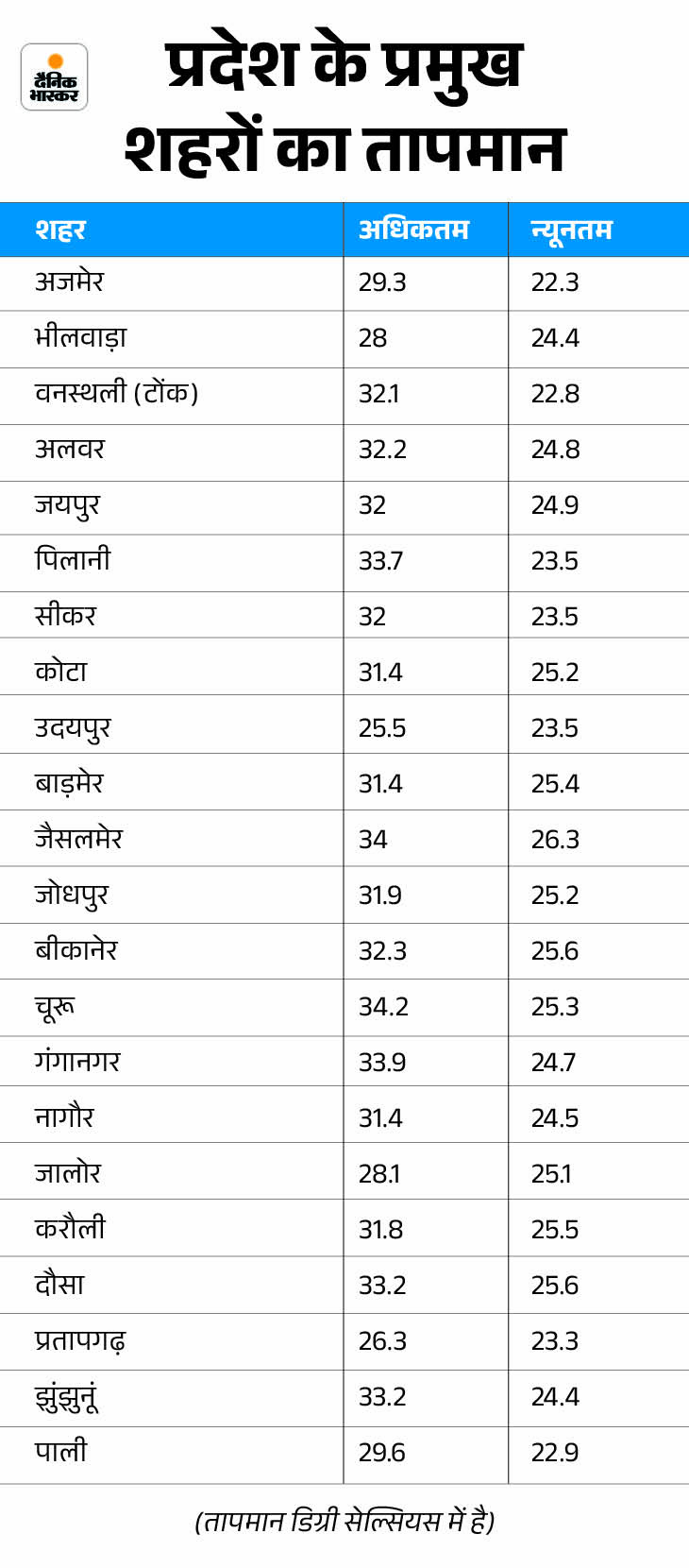 माउंटआबू में सबसे ज्यादा बारिश पिछले 24 घंटे के दौरान सिरोही के माउंट आबू में 160MM दर्ज हुई। सिरोही में ही आबूरोड पर 29MM, देलदर में 25MM, उदयपुर के कोटड़ा में 25MM, फलासिया में 23MM, प्रतापगढ़ जिले में 36MM, जोधपुर के शेरगढ़ में 23MM, जालोर के जसवंतपुरा में 52MM, हनुमानगढ़ के टिब्बी में 39MM, तलवाड़ा झील में 32MM, चित्तौड़गढ़ के राश्मी में 20MM, भरतपुर के भुसावर में 27MM, बाड़मेर के गुड़ामालानी में 29MM और बांसवाड़ा के कुशलगढ़ में 18MM बरसात दर्ज हुई।