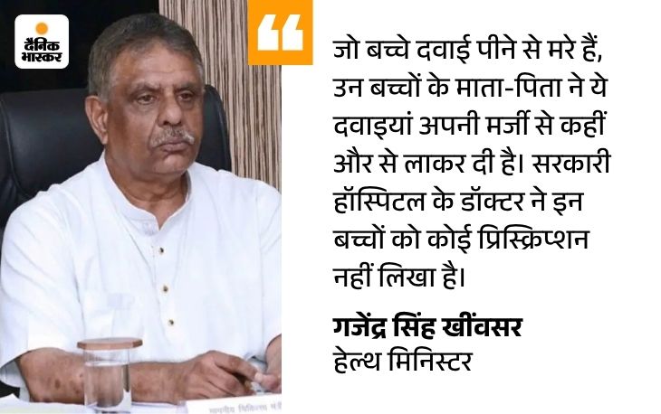 इस मामले में हेल्थ मिनिस्टर गजेंद्र सिंह खींवसर ने भी अपने विभाग और कंपनी का बचाव करते हुए कहा- हमने सरकारी स्तर पर भी दवाइयों की जांच करवा ली है। उनमें कोई खराबी नहीं निकली है।