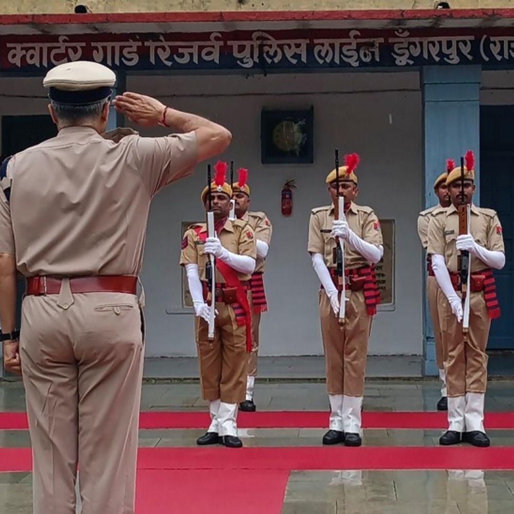 पुलिस महानिदेशक राजस्थान राजीव कुमार के डूंगरपुर पुलिस लाइन पहुंचने पर एसपी मनीष कुमार, एएसपी अशोक कुमार ने गुलदस्ता देकर स्वागत किया। इसके बाद पुलिस बैंड के साथ ही गार्ड ऑफ ऑनर दिया गया।