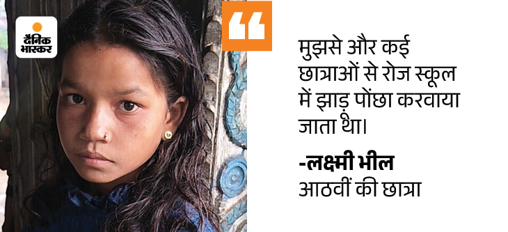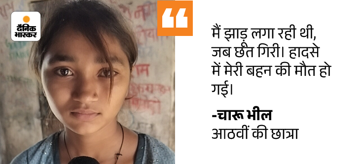 लक्ष्मी ने बताया कि उनसे रोज स्कूल में झाड़ू पोंछा करवाया जाता था। गांव की चारू भील भी लक्ष्मी के साथ आठवीं क्लास में है। वो भी शुक्रवार सुबह झाड़ू लगा रही थी, जब स्कूल की छत भरभराकर गिर गई। वह तो बच गई, लेकिन सातवीं क्लास में पढ़ने वाली उसकी बहन की मौत हो गई।