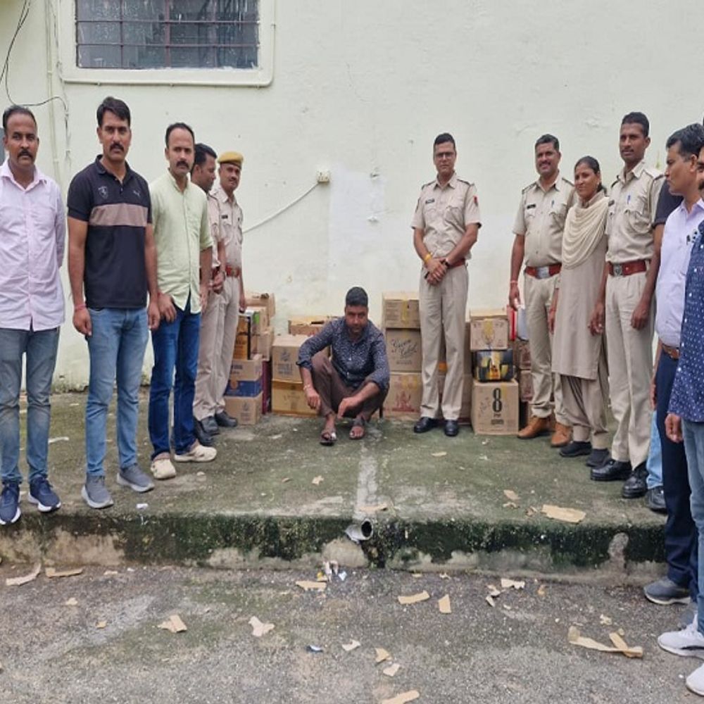 उदयपुर की गोवर्धन विलास थाना पुलिस ने अवैध शराब के खिलाफ कार्रवाई करते हुए 7 लाख रुपए कीमत की अवैध शराब जब्त की है। 57 कर्टन जब्त करते हुए एक आरोपी को गिरफ्तार किया है। मिनी ट्रक भी जब्त किया है।