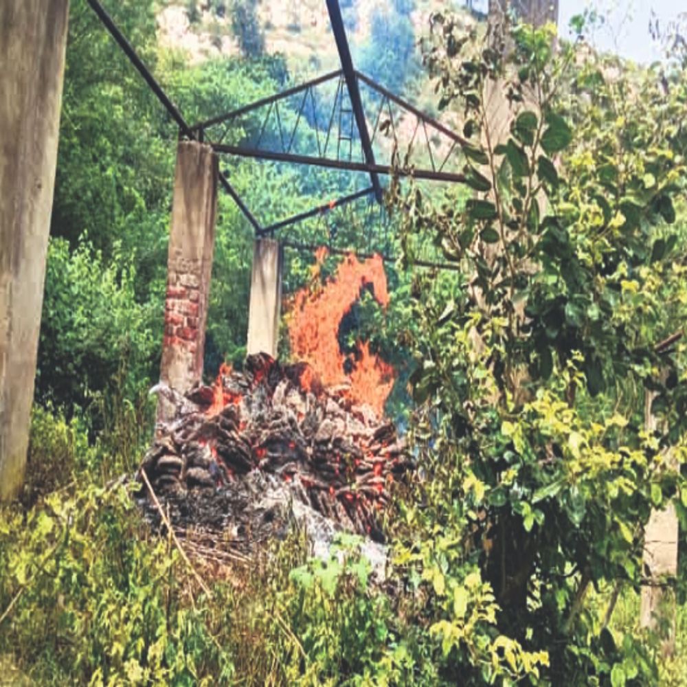 ककड़ा गांव में जलती चिता, जिसे पुलिस ने अधजला शव बरामद किया।