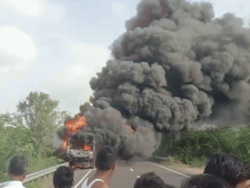 जानकारी के अनुसार, बाड़मेर के चौहटन से गुजरात के पालनपुर जा रही यह बस ज्यादातर मरीजों को लेकर जा रही थी, जो दवाई लेने के लिए गुजरात जाते हैं। प्रारंभिक जानकारी में बताया जा रहा है कि एक बाइक से टक्कर के बाद बस में आग लग गई।