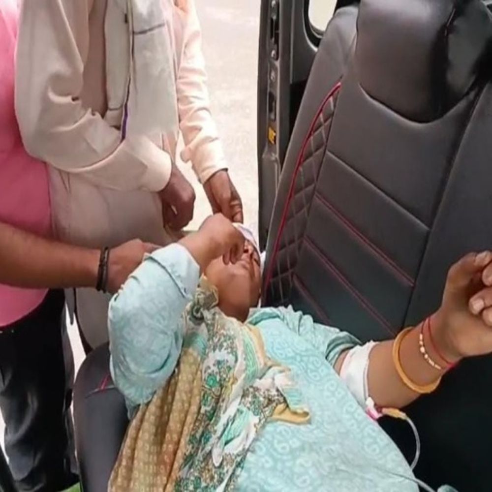घायल महिला सीमा को एसपी ऑफिस लेकर पहुंचे परिजन।