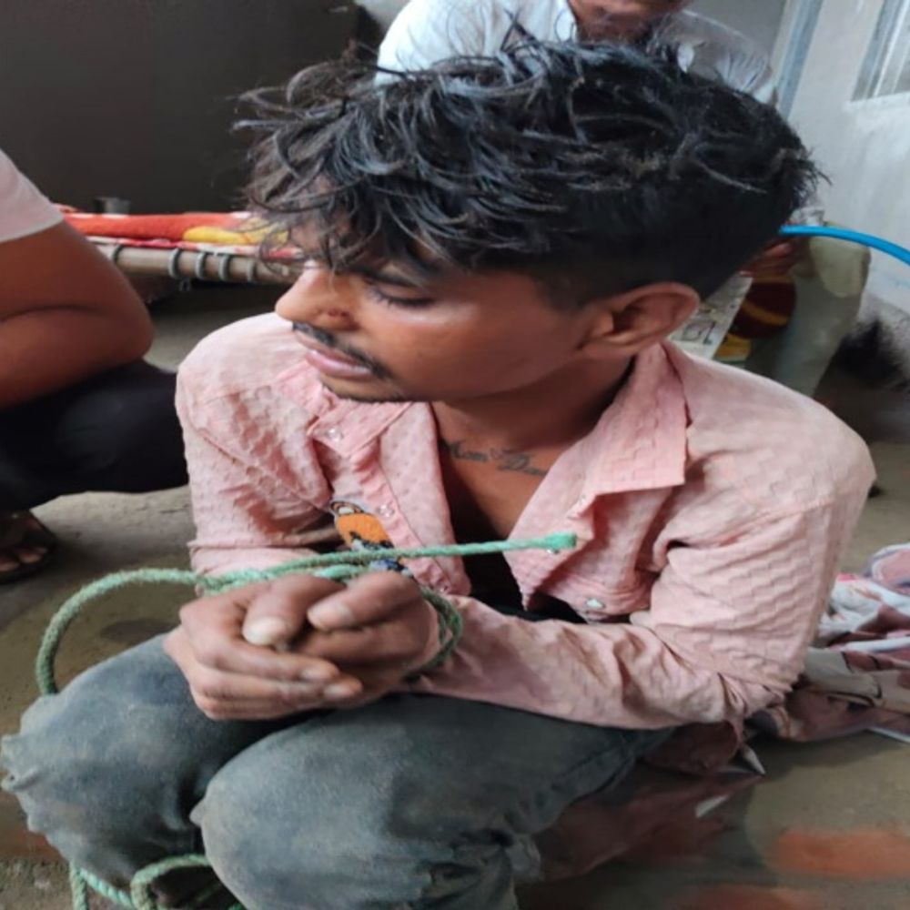 चोरी के आरोपी युवक को पकड़कर बांधा।