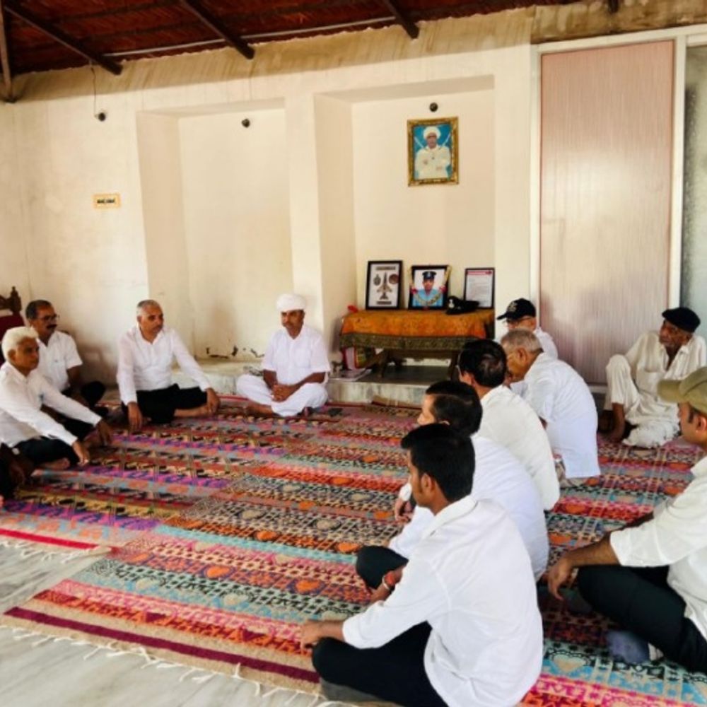 पाली जिले के खिवांदी गांव (सुमेरपुर) में शहीद फ्लाइट लेफ्टिनेंट ऋषिराज सिंह देवड़ा के निवास पर शहीद को श्रद्धासुमन अर्पित करने पहुंचे श्री क्षत्रिय युवक संघ के संघ प्रमुख लक्ष्मण सिंह बैण्याकाबास।