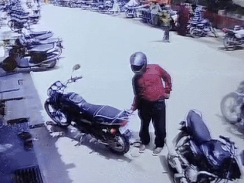 बाइक के बैग से डेढ़ लाख चोरी, VIDEO:बैंक से निकाले थे, मेडिकल स्टोर के बाहर वारदात; हेलमेट पहनकर आया आरोपी