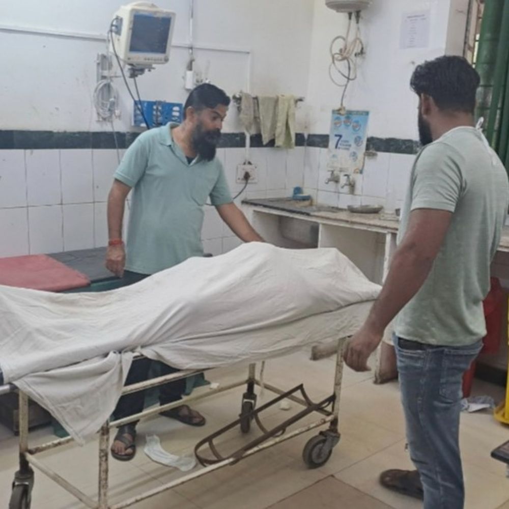 पाली के बांगड़ हॉस्पिटल में ट्रक ड्राइवर की बॉडी मोर्चरी में रखवाते हुए।