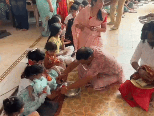 दोपहर बाद महाआरती की गई और उसके बाद देवी स्वरूप कन्याओं के चरण धोकर उन्हें तिलक लगाकर चुनरी ओढ़ाई गई और मुंह मीठा करने के बाद उन्हें भोजन प्रसाद कराया गया।